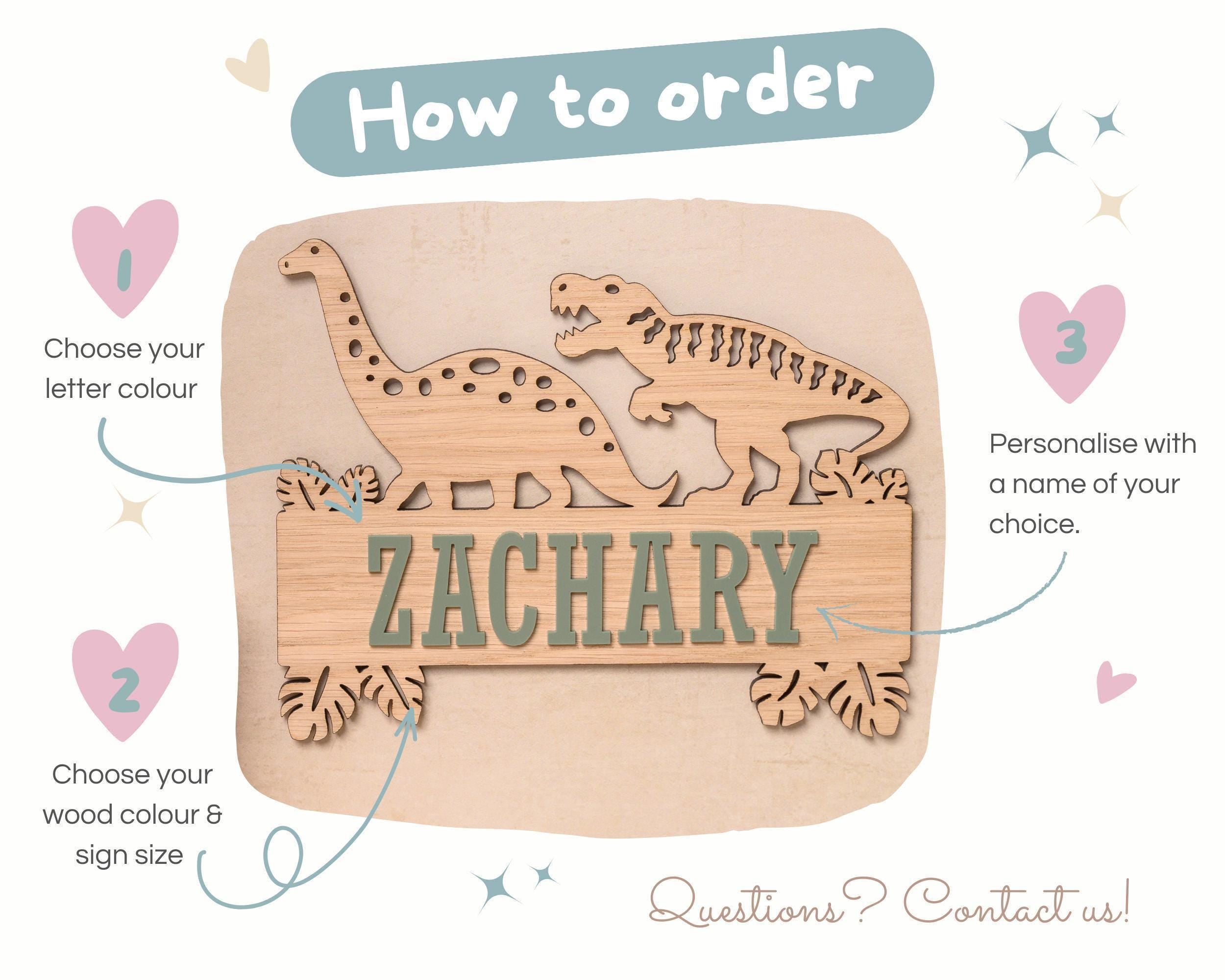 Double-layered dinosaur name sign – fun, bold and fully customisable.