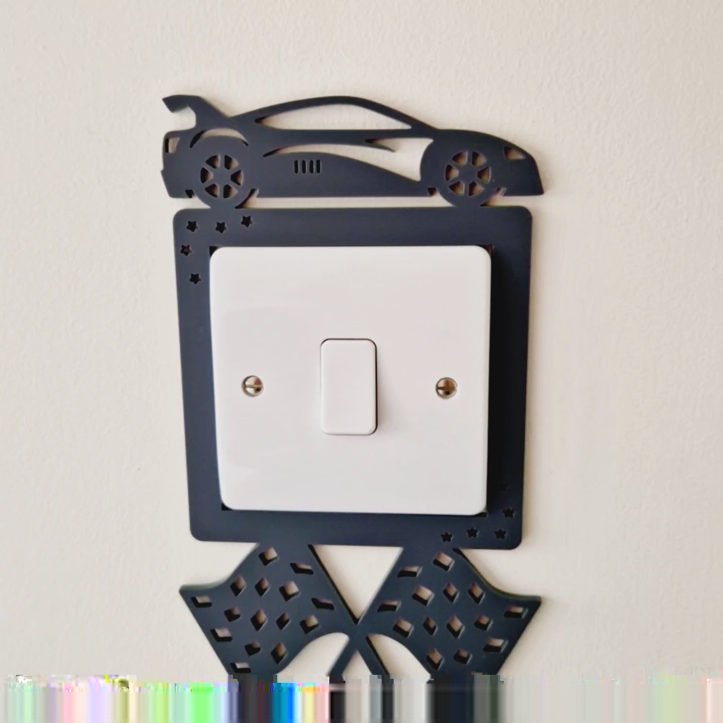 Say hello to the finishing touch – this rally car light switch surround puts pedal to the metal in any car-themed bedroom or playroom.