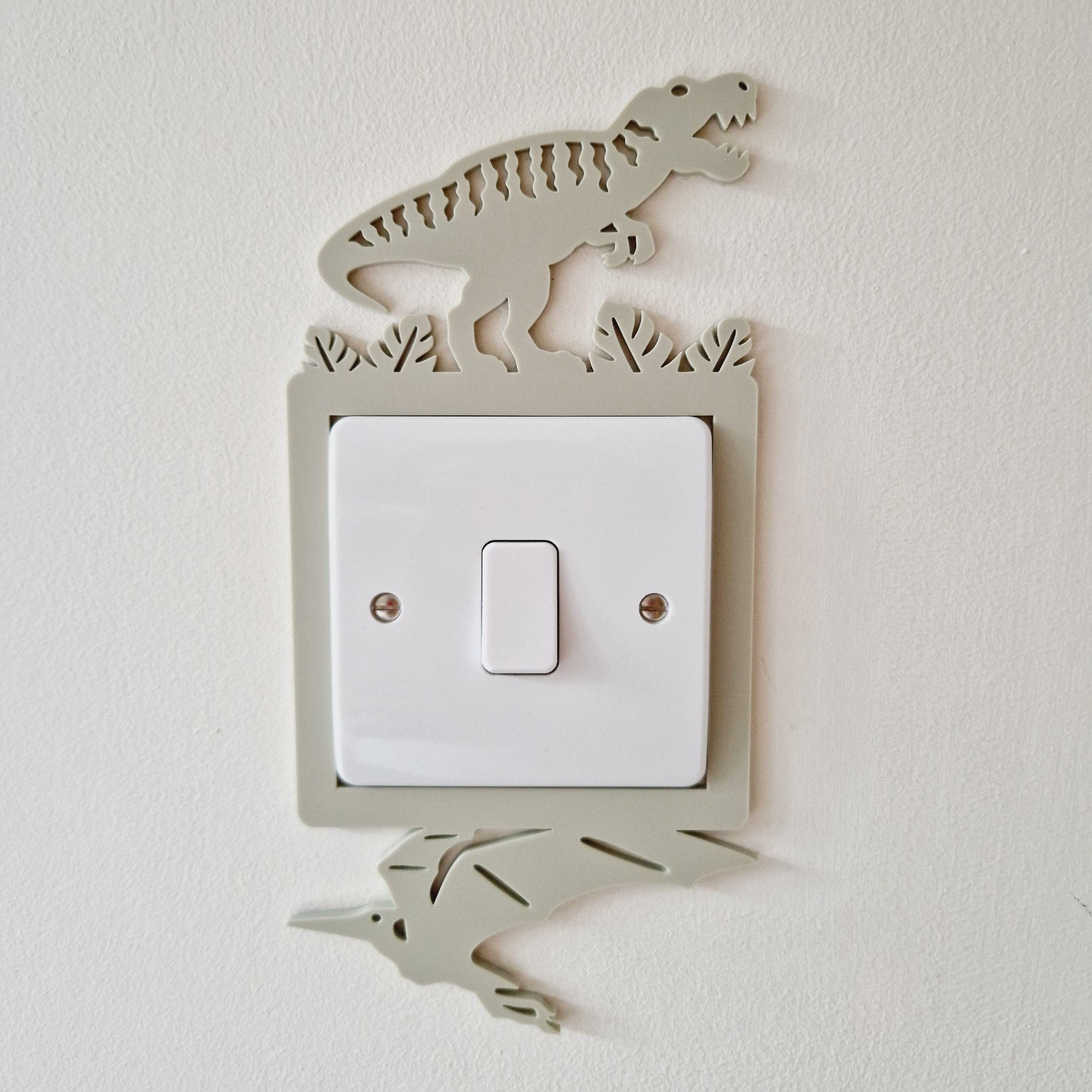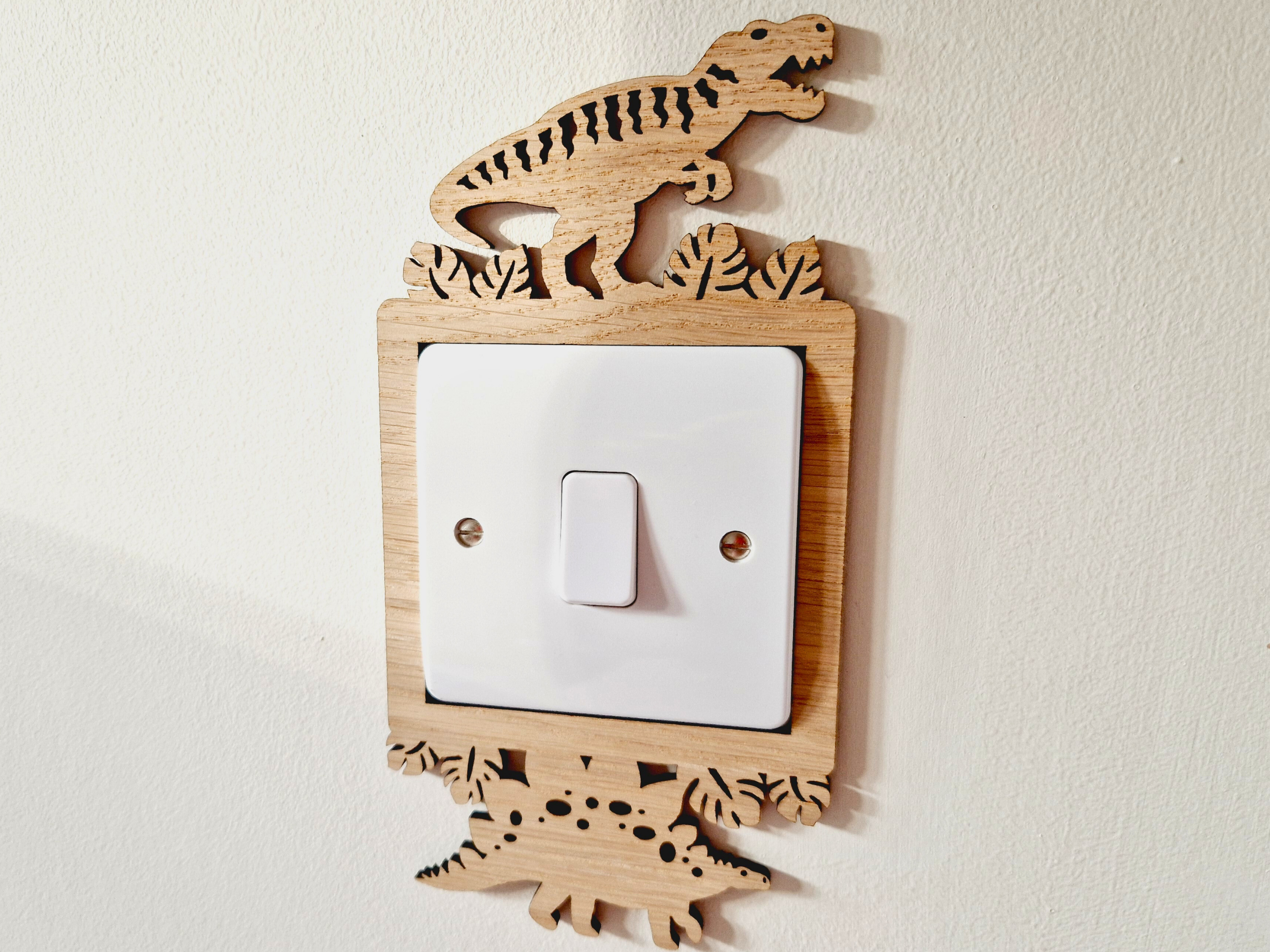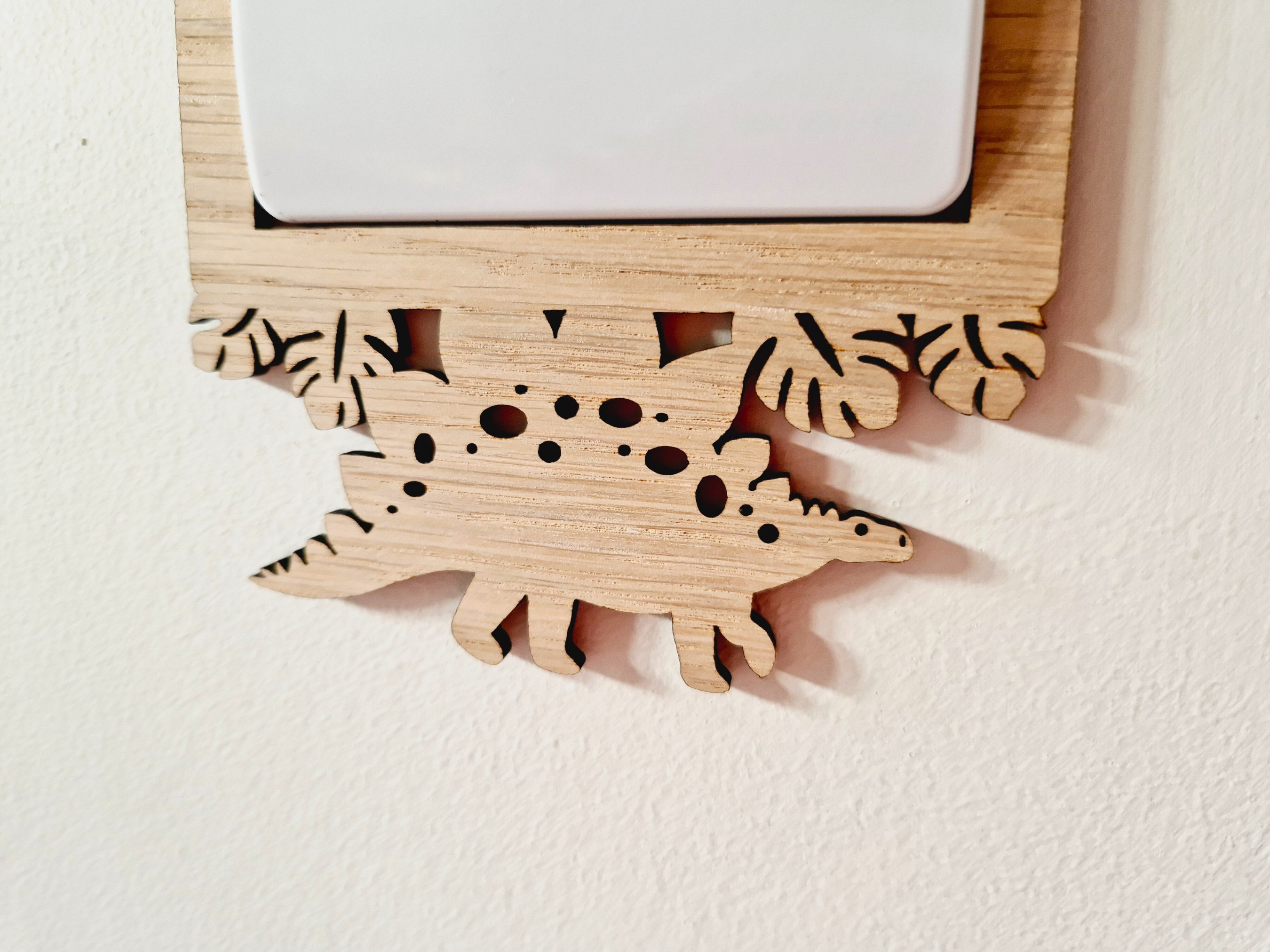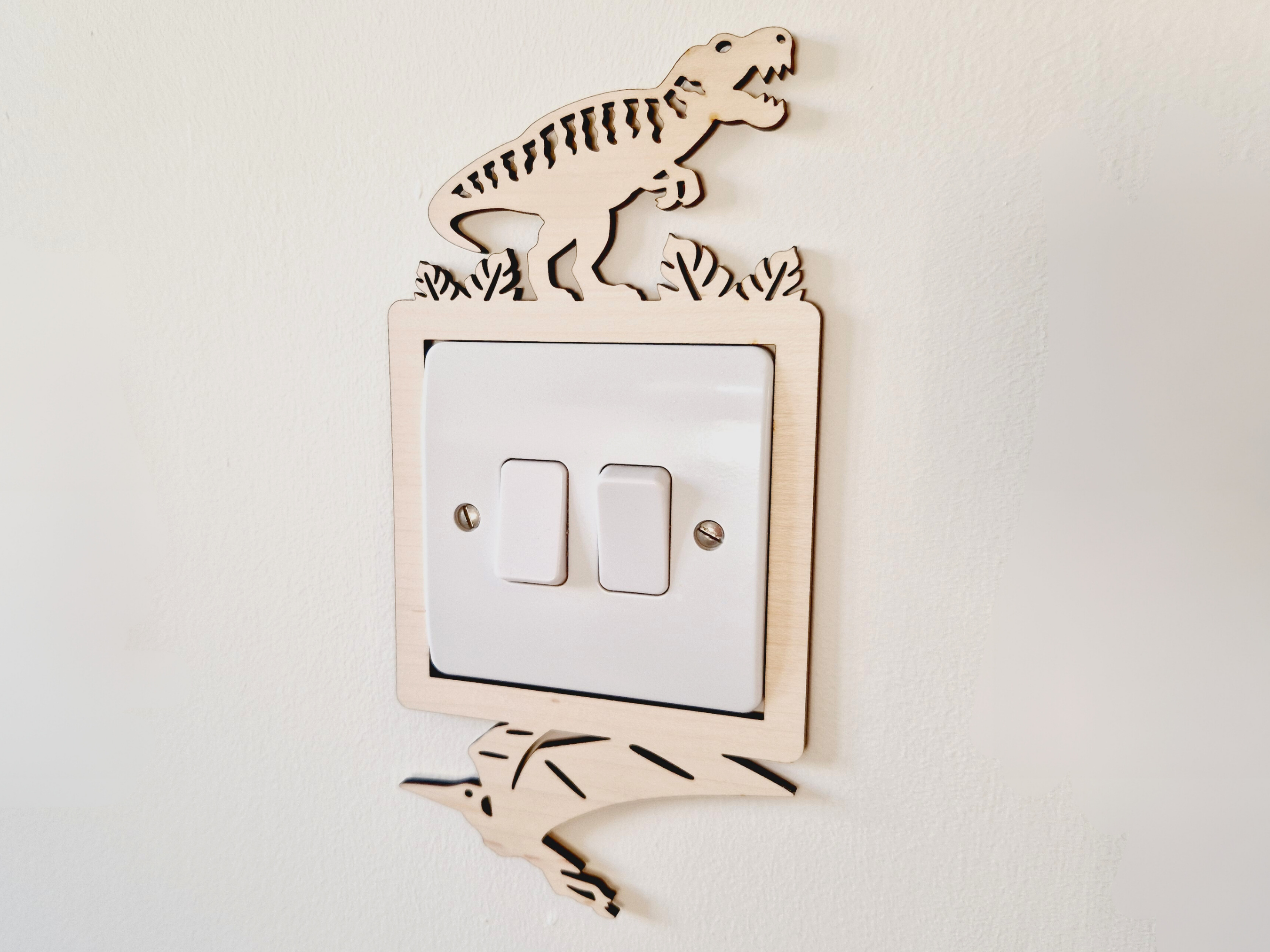 Wooden Dinosaur Light Switch Surround - T-Rex & Stegosaurus Design