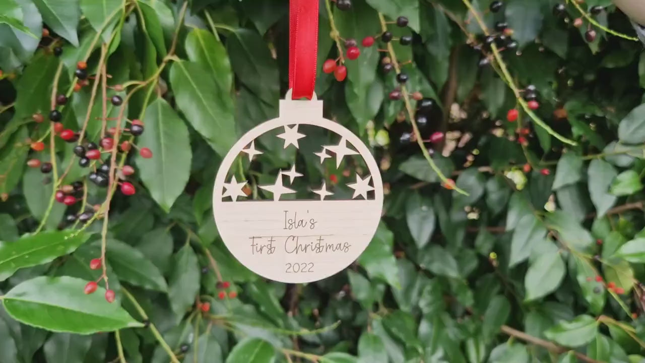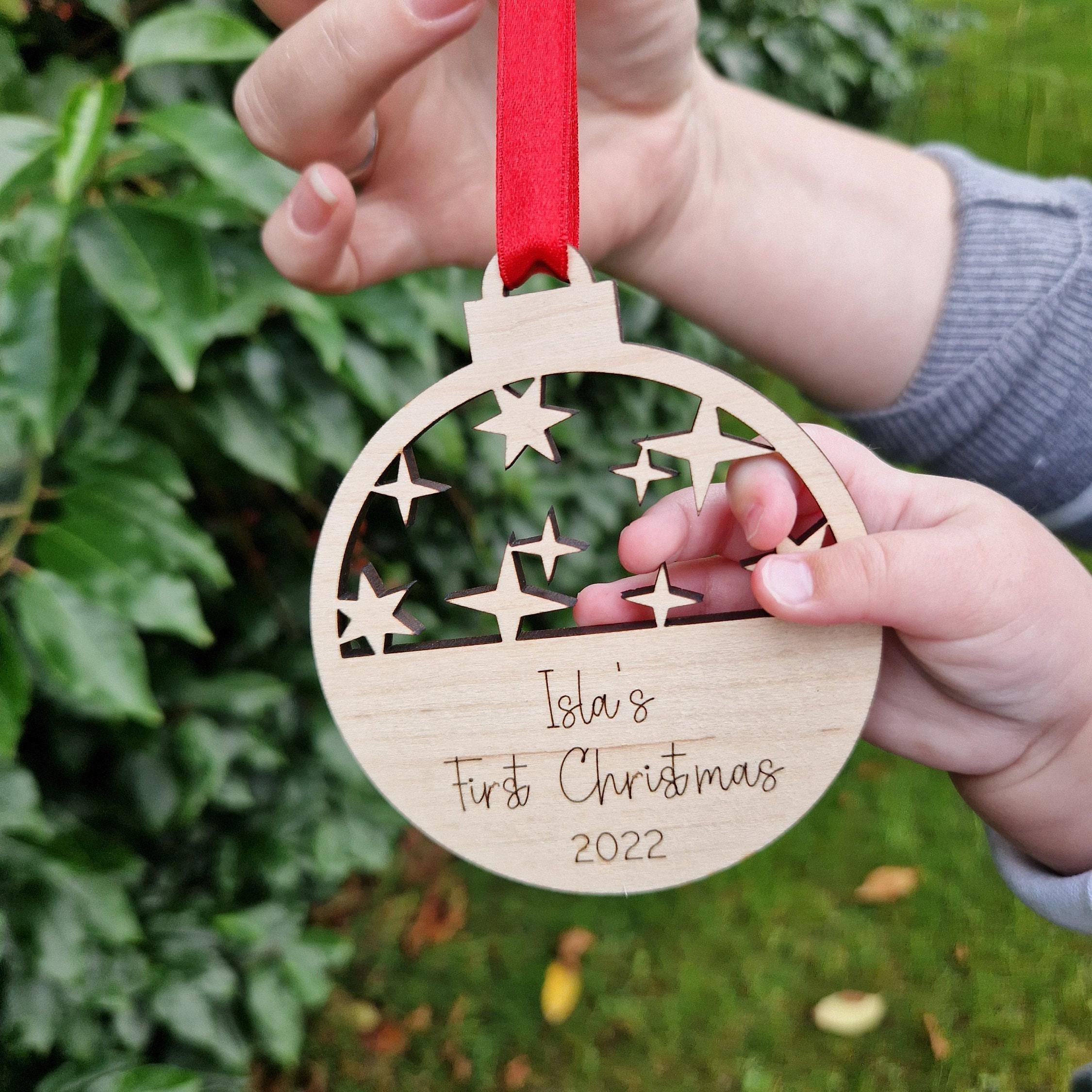 Each star is precision-cut and engraved onto high-quality veneered wood and customised with your baby’s name alongside the words “First Christmas 2025.”