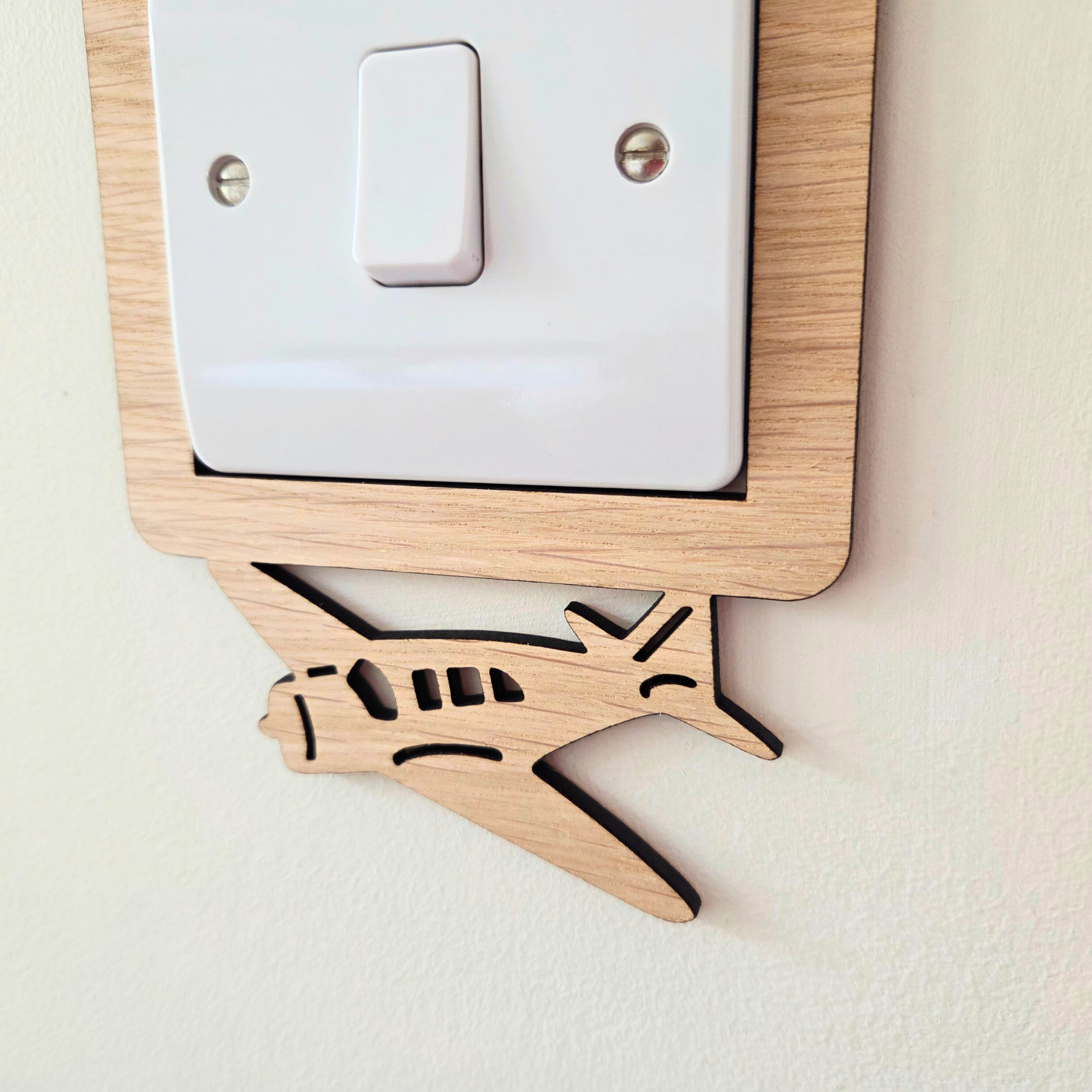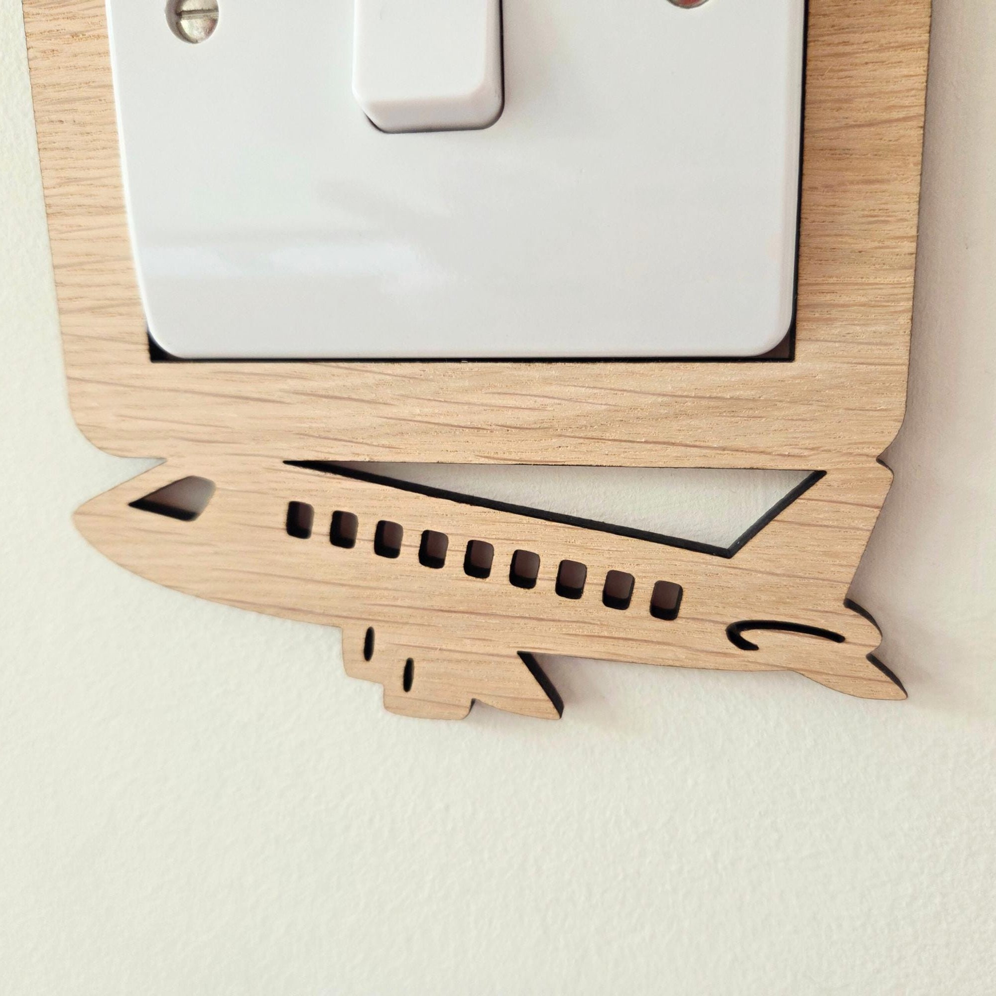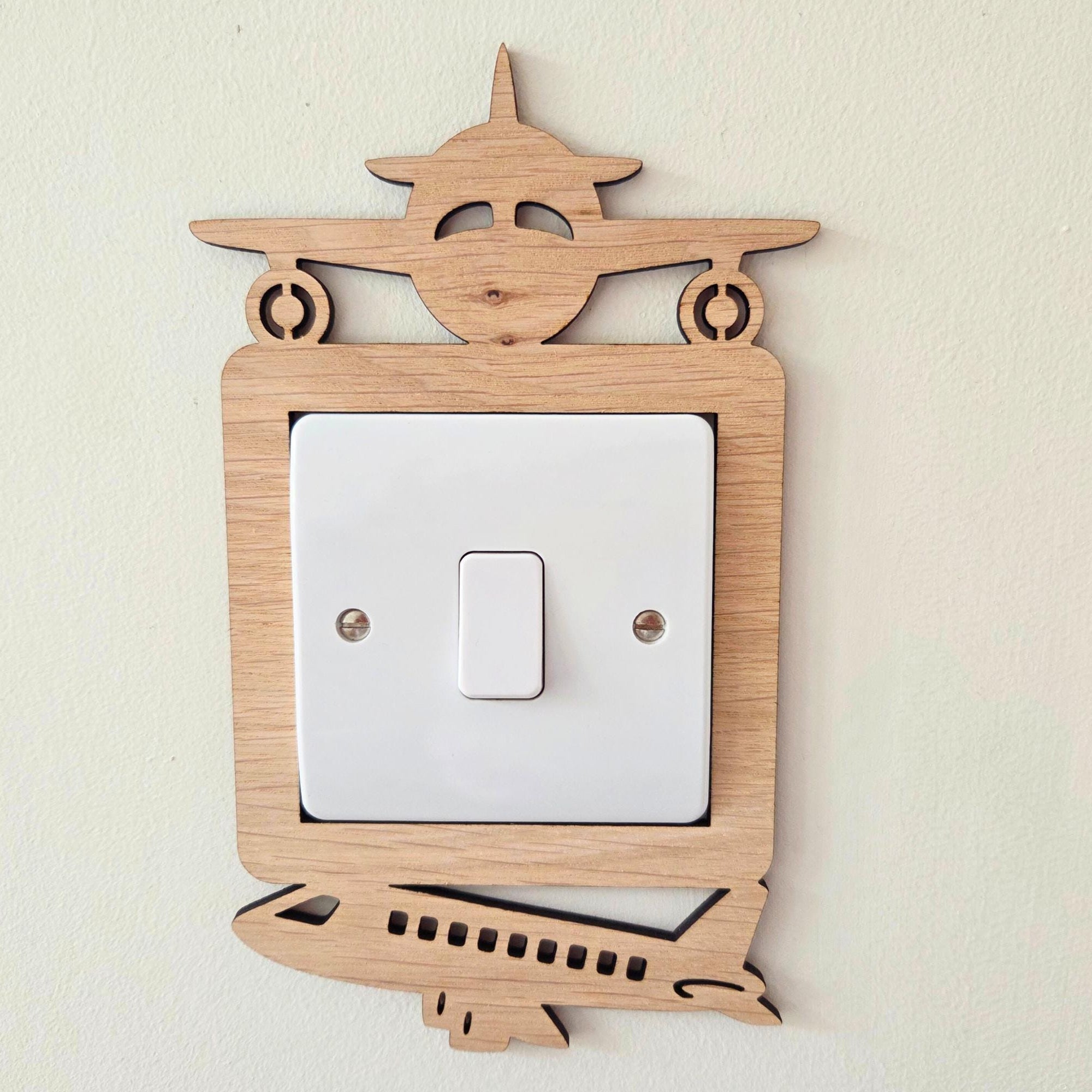 Jumbo Jet Aeroplane Light Switch Surround - Wood