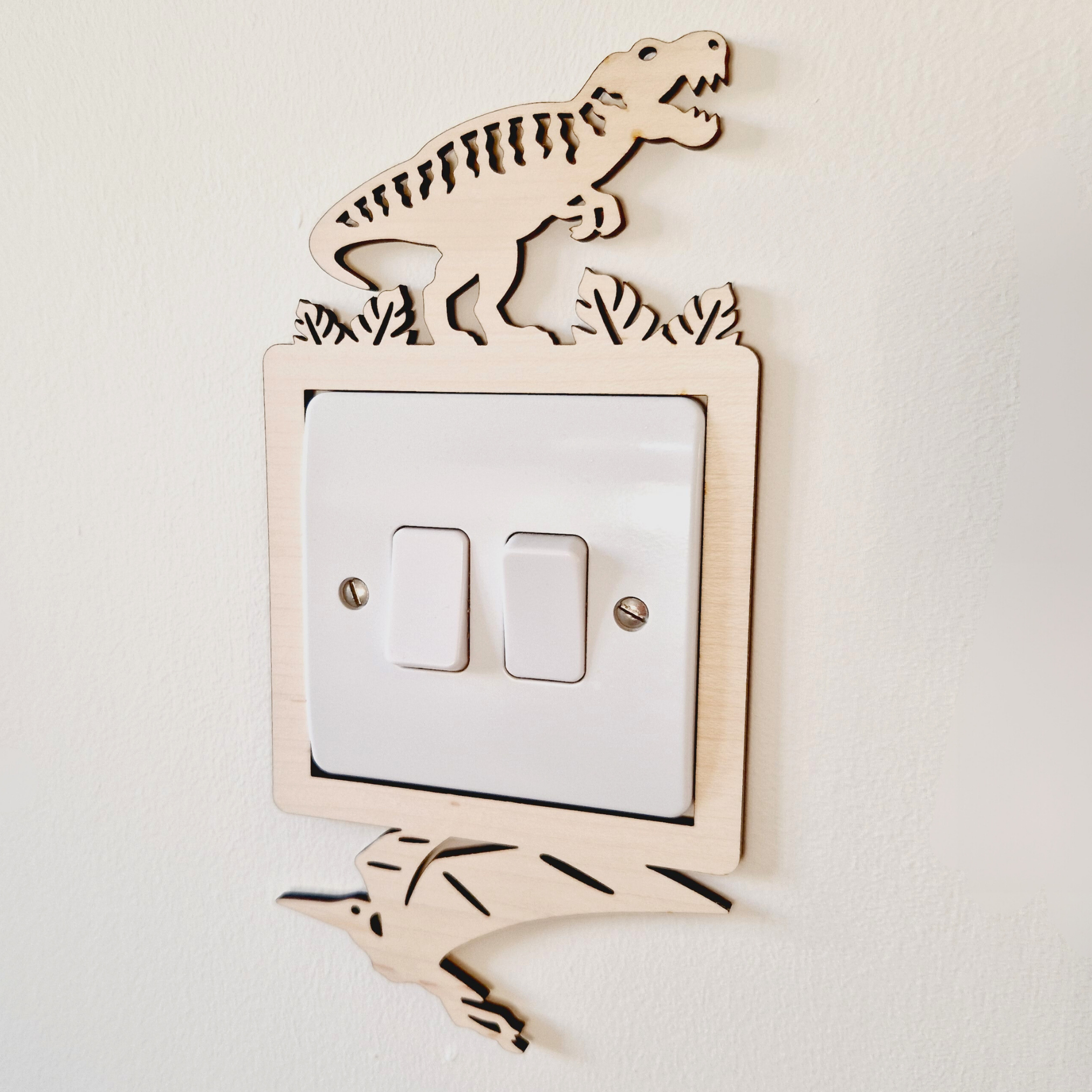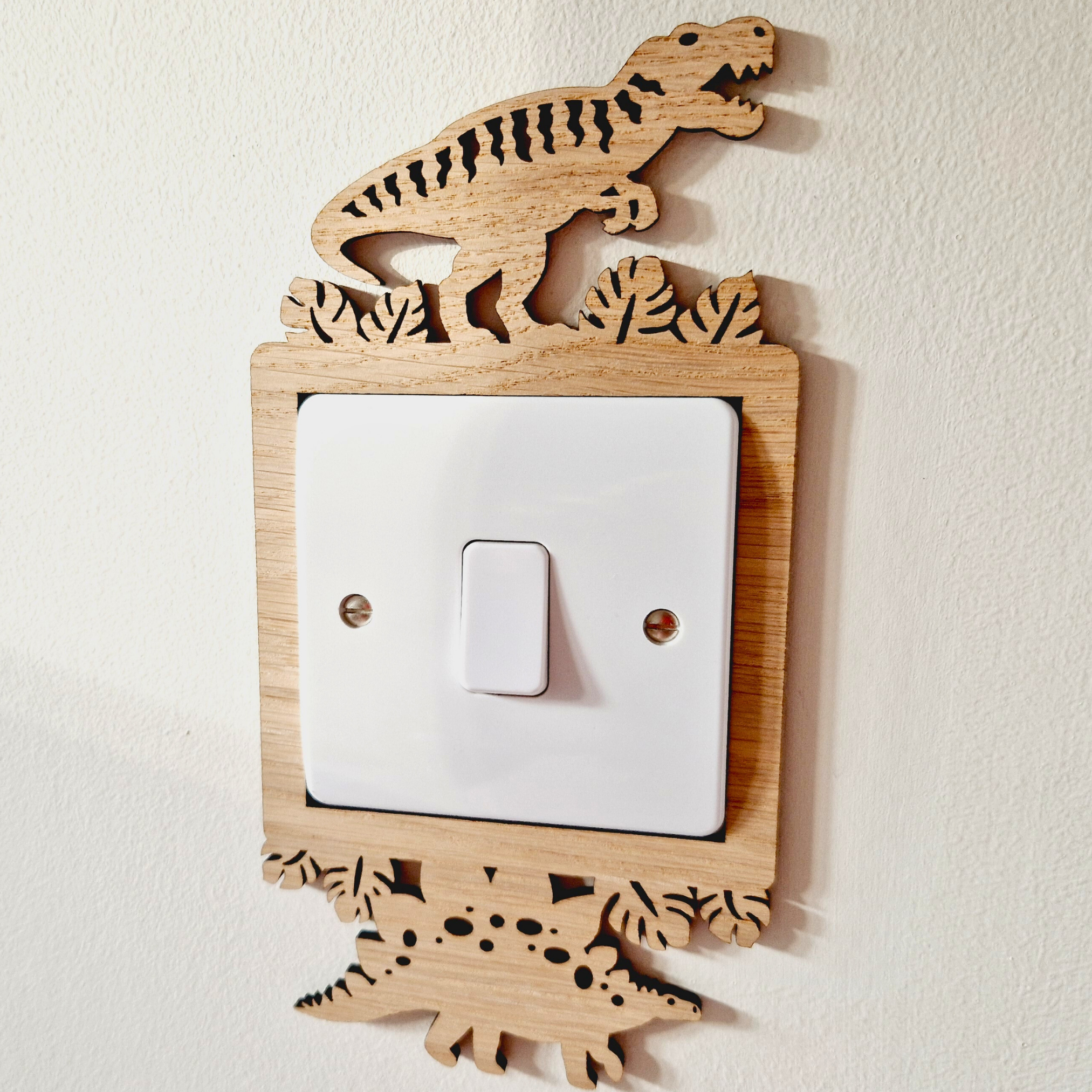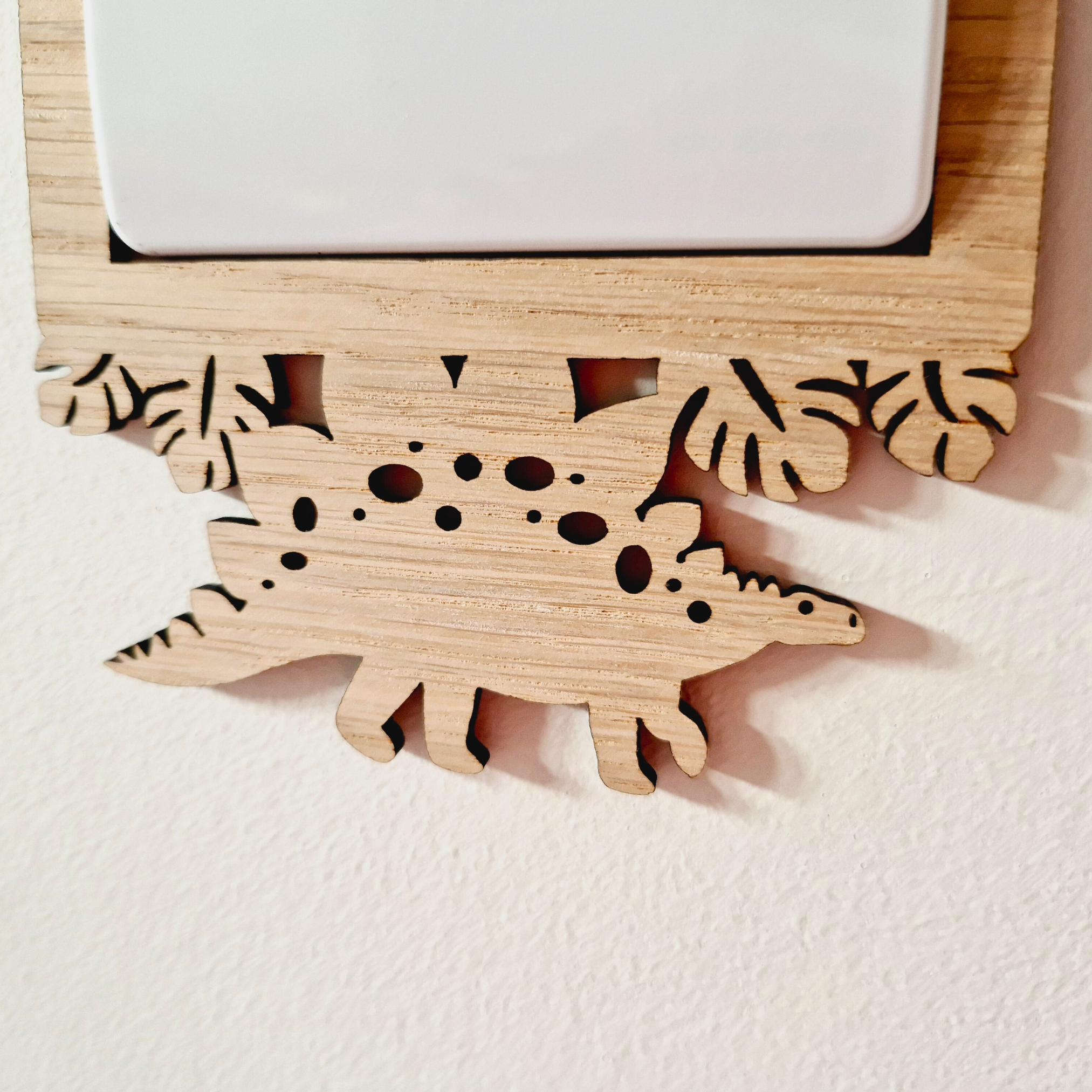 1 reviewWooden Dinosaur Light Switch Surround - T-Rex & Stegosaurus Design