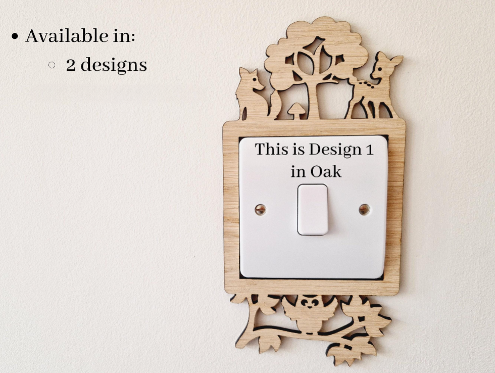 7 reviewsWoodland Light Switch Surround with Fox Deer & Owl - Wood