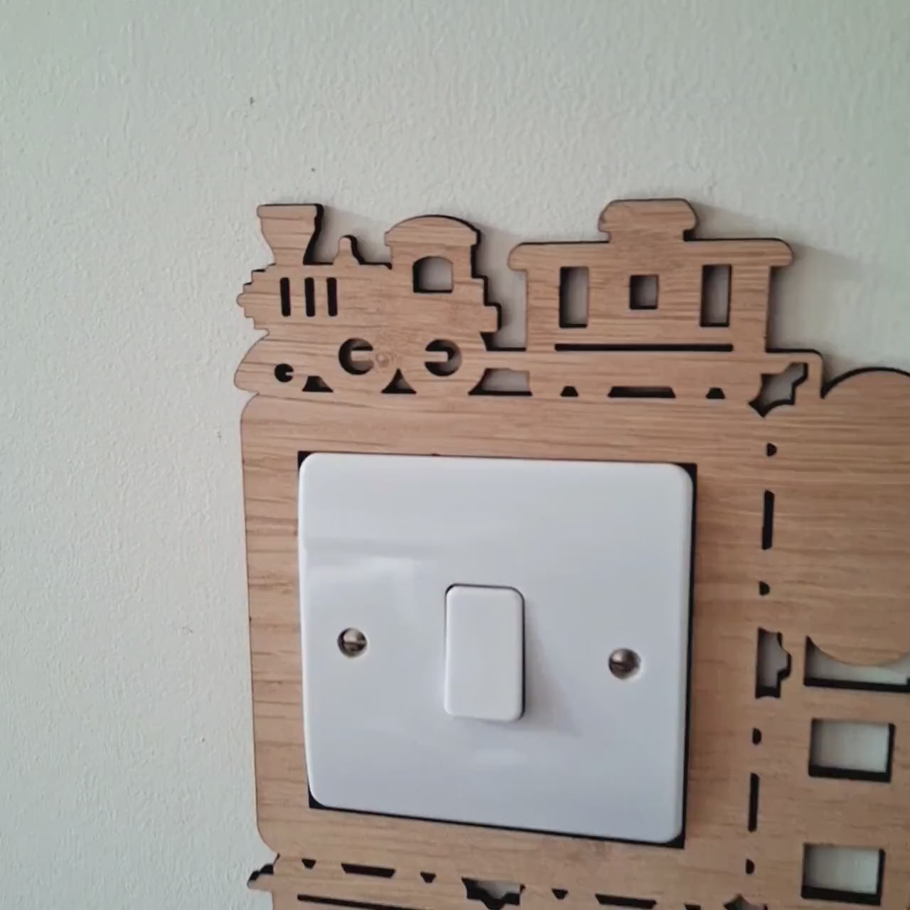 • Steam train light switch surround – perfect for mini railway enthusiasts.