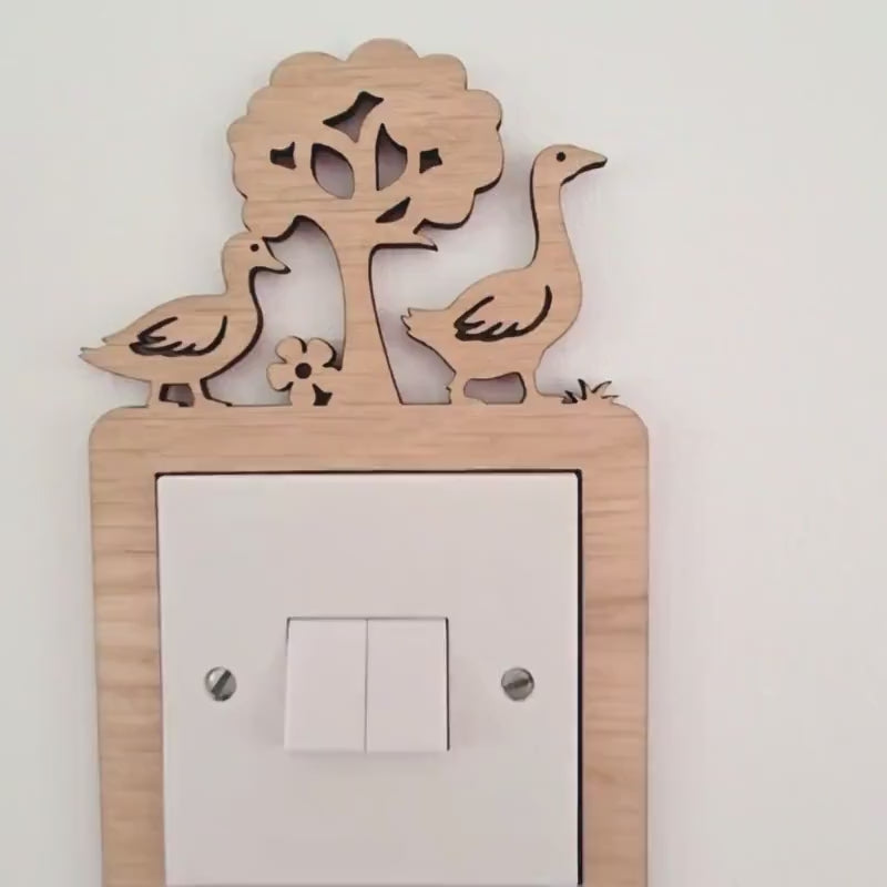 Say hello to the finishing touch your child’s room has been waiting for. This wooden light switch surround features a charming duck, goose, tree and floral design, bringing a sweet, storybook feel to nurseries, bedrooms and playrooms.
