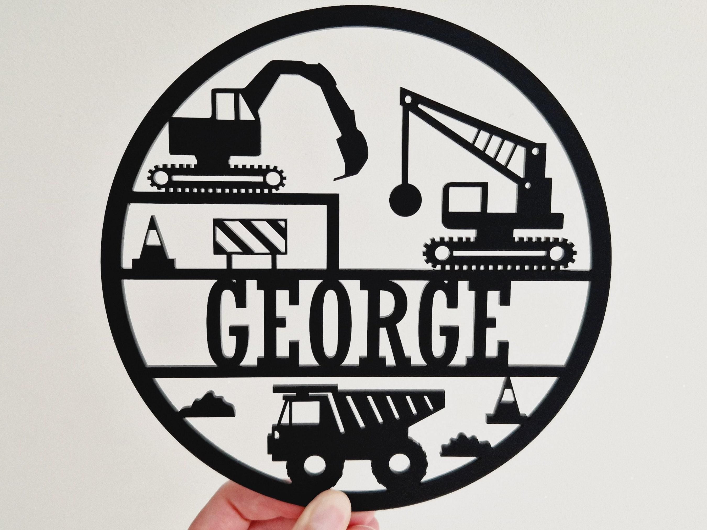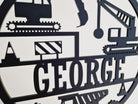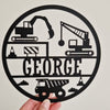 Construction-themed name sign – features diggers, cranes and trucks.