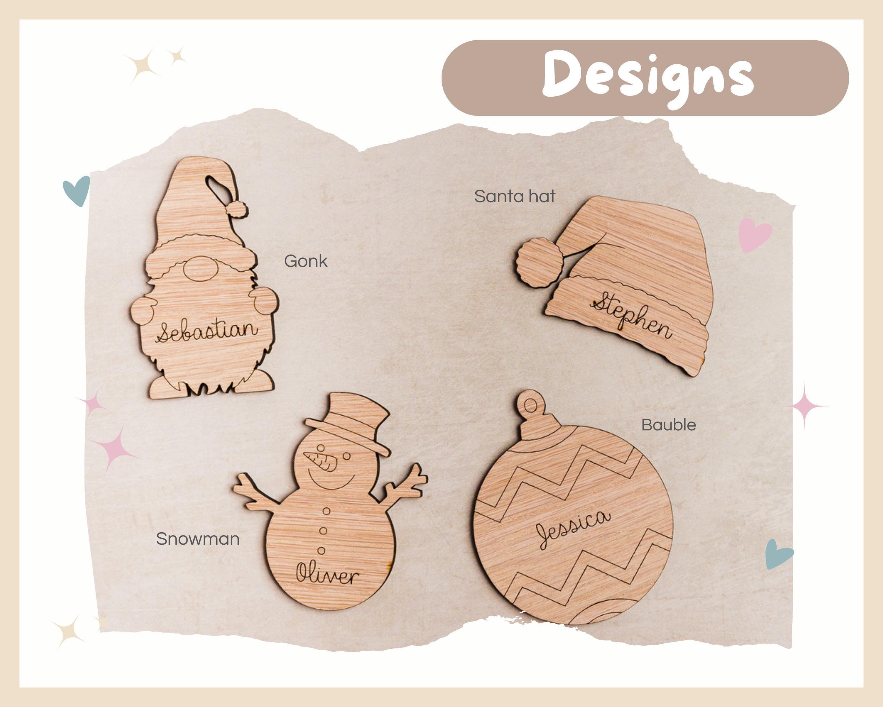Made from high-quality oak wood and available in eight festive shapes – Bauble, Christmas Gonk, Christmas Tree, Gingerbread Man, Gingerbread Woman, Santa, Santa Hat and Snowman – each one is engraved with your guest’s name for a thoughtful, personal finish.