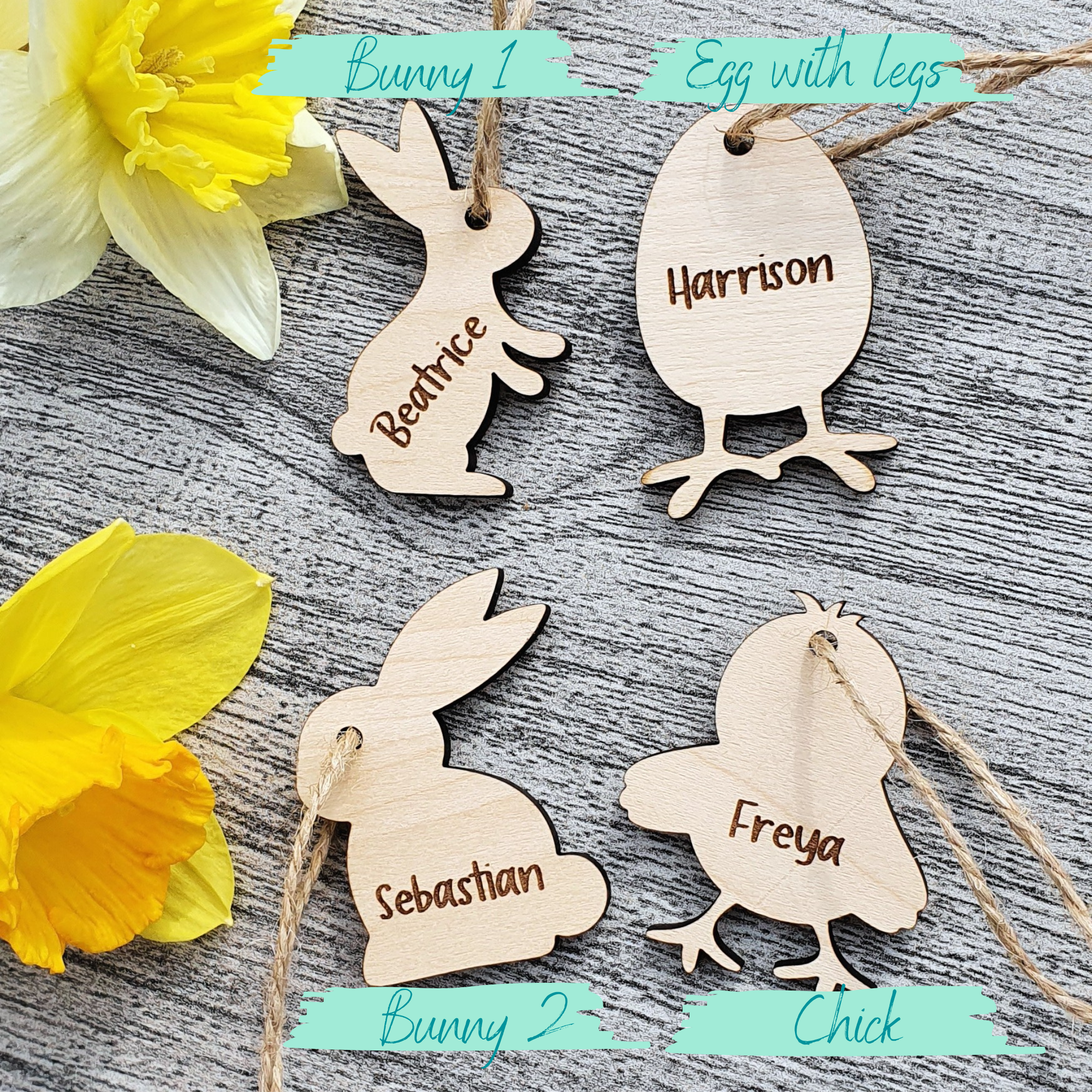 Mini Personalised Wooden Easter Bunny, Chick and Egg Tags