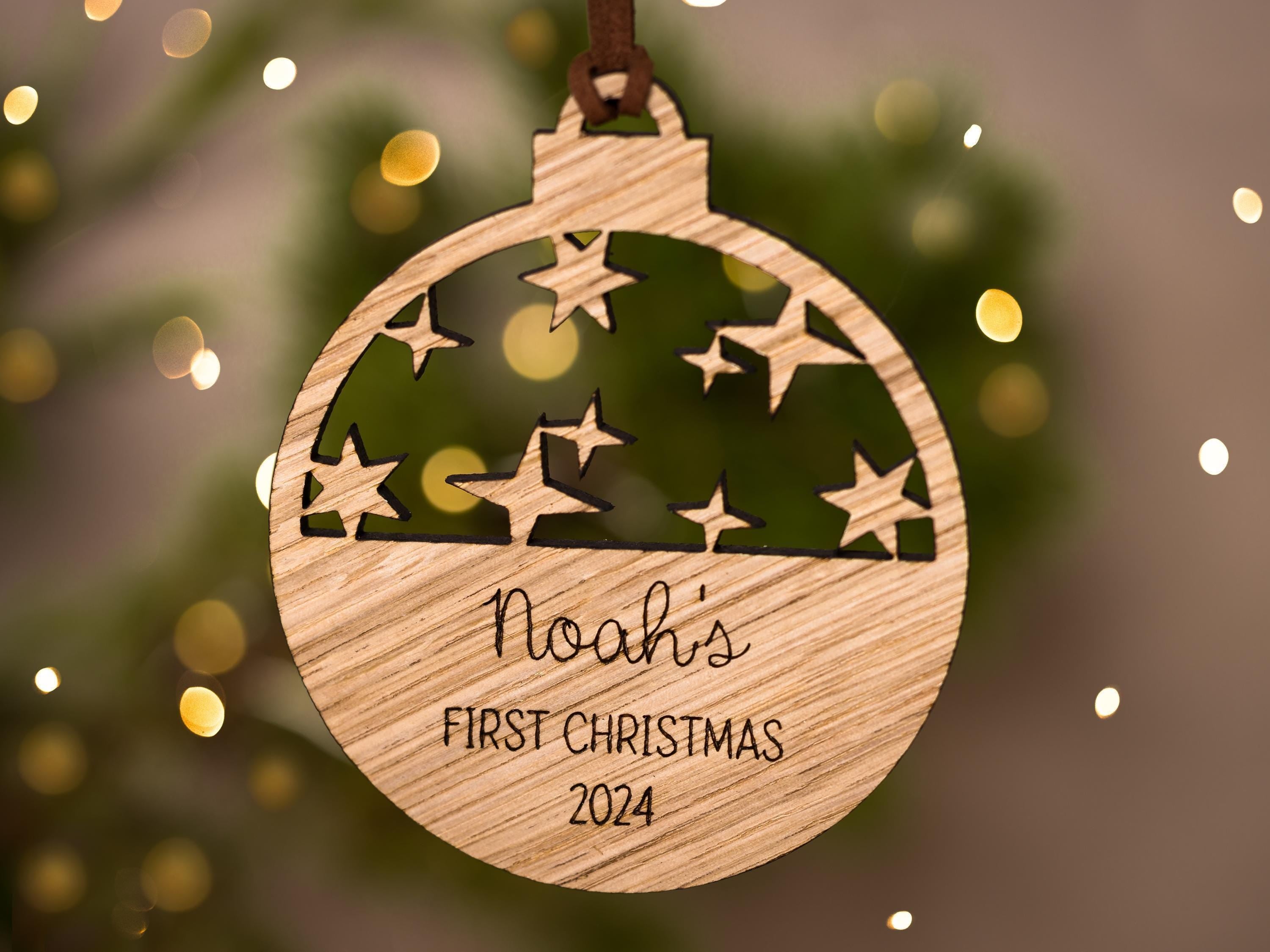 Your child’s first Christmas just got a whole lot happier… with this beautifully crafted personalised wooden bauble. Engraved with your baby’s name and the year, and available in four charming cut-out designs, it’s a timeless keepsake that marks a truly magical milestone.