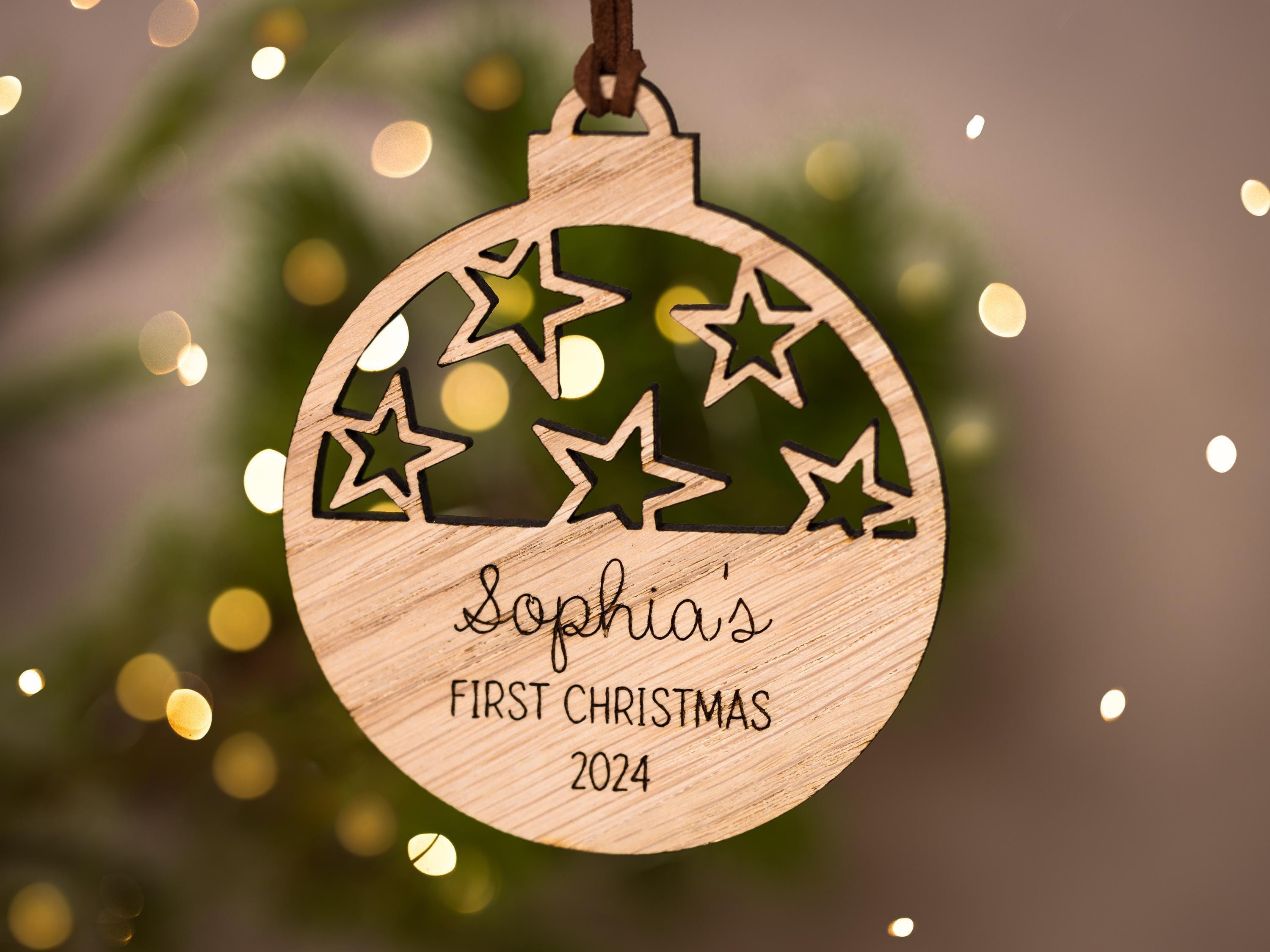 Personalised Baby’s First Christmas Wooden Ornament - Tree Design