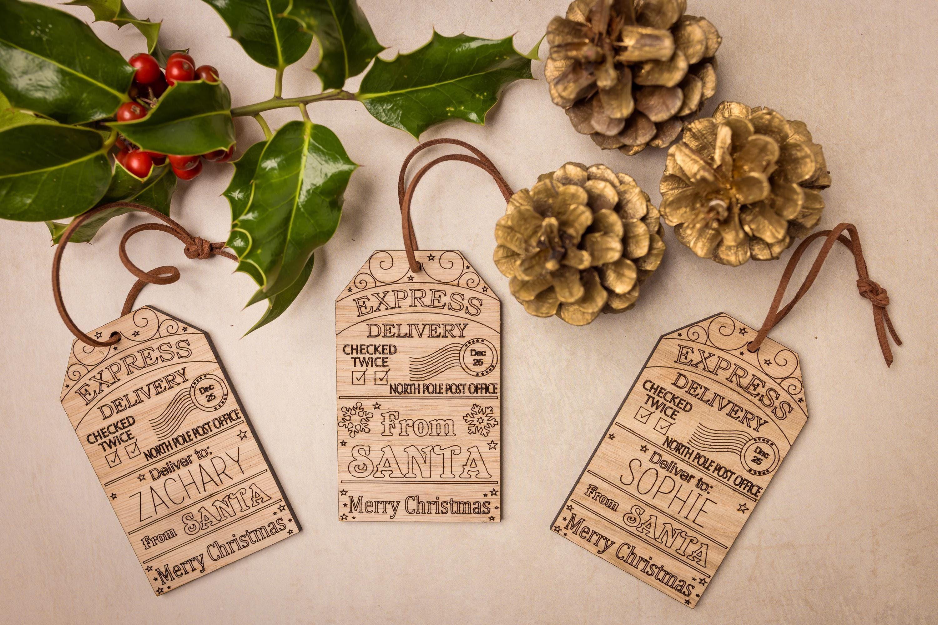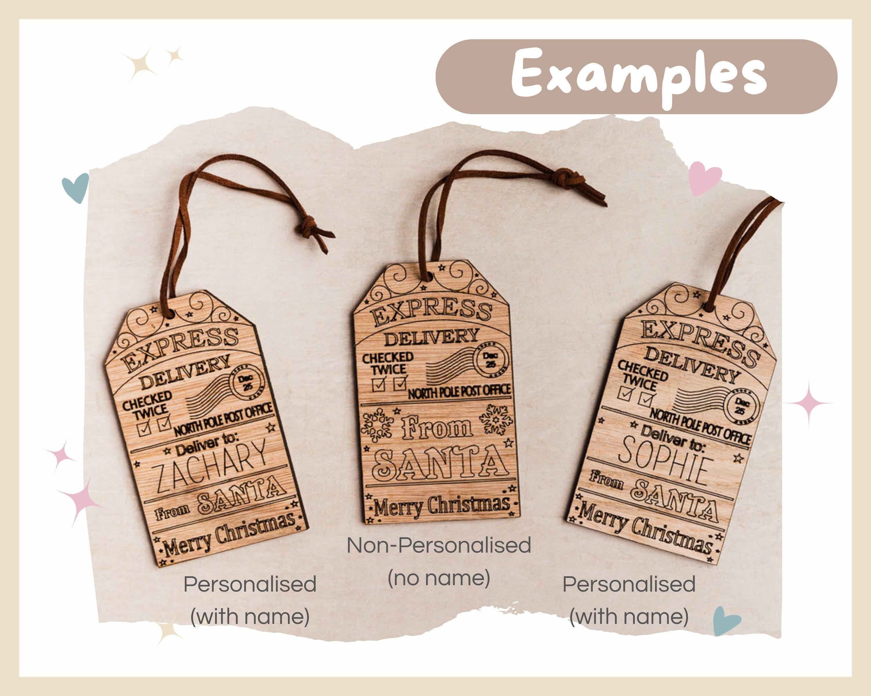 Say it with festive charm: our Personalised Santa Express Delivery Tag is the perfect way to add a little extra Christmas magic to your gifts. Precision-cut from 4mm veneered wood, each tag is engraved with cheerful wording direct from the North Pole and can be personalised with your child’s name—or left blank for a classic, timeless finish.