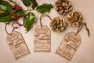 Comes with cord or ribbon – ready to tie to stockings, presents or bags