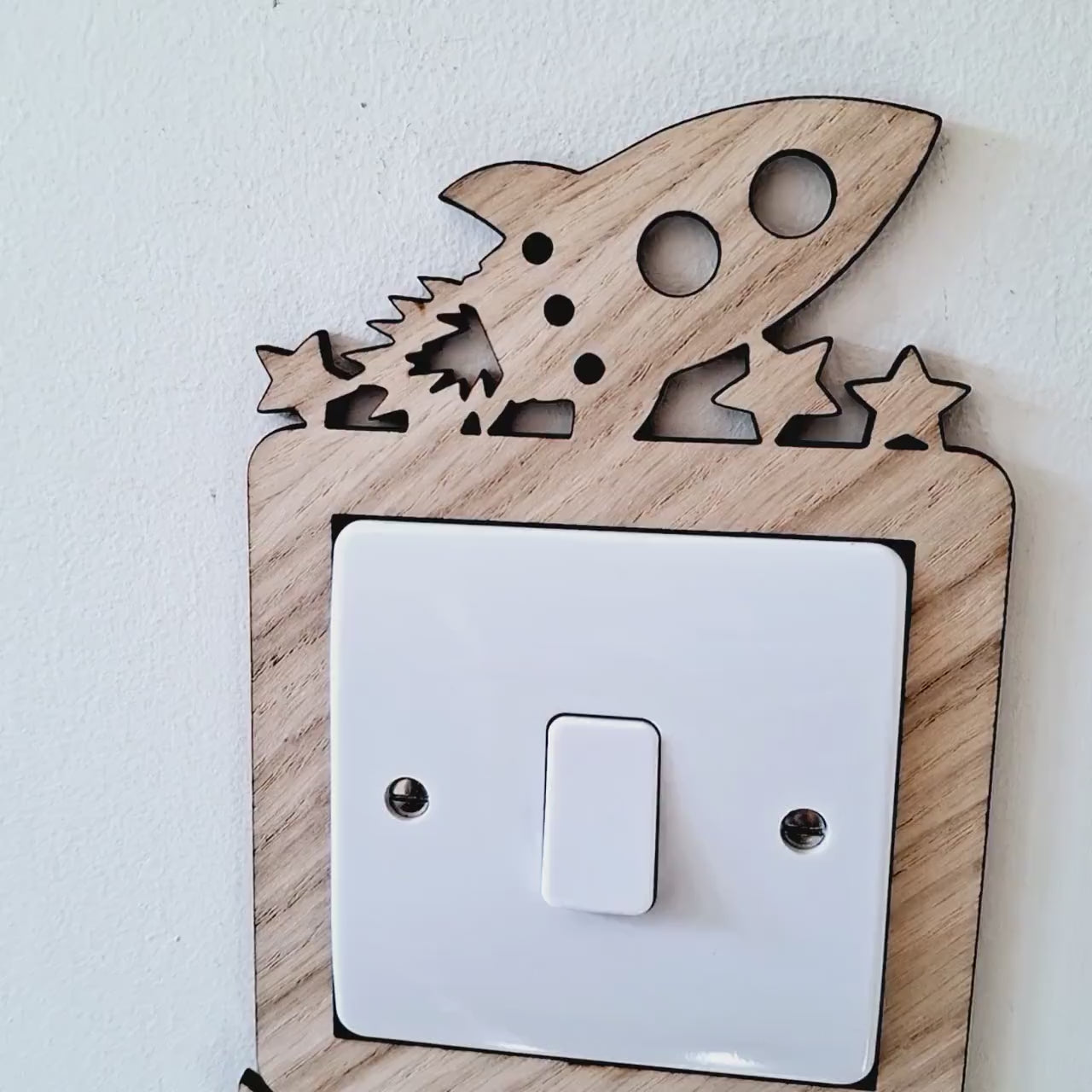 Space Rocket & Planets Light Switch Surround – Wood