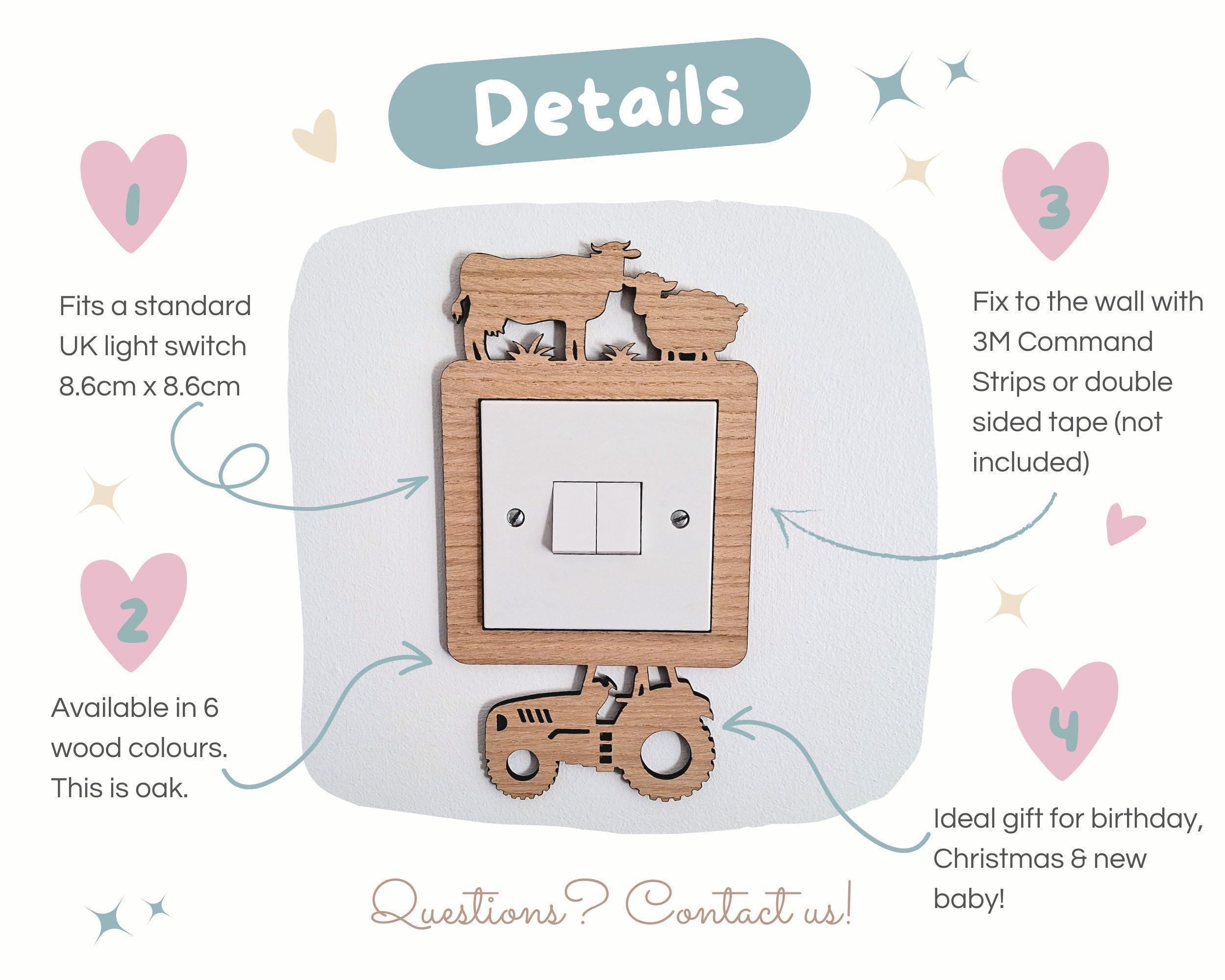 Small touch, huge impact. This farmyard-themed light switch surround is the perfect way to bring countryside charm into your child’s nursery, bedroom or playroom.
