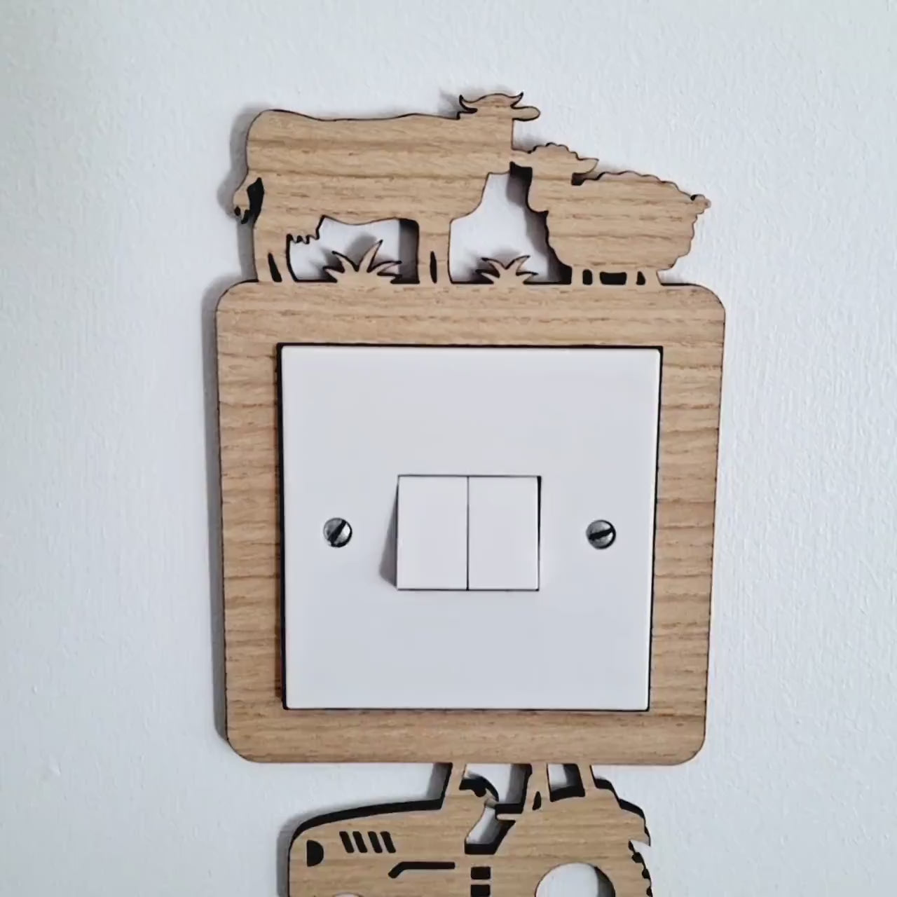 Farmyard Cow & Tractor Light Switch Surround – Wood