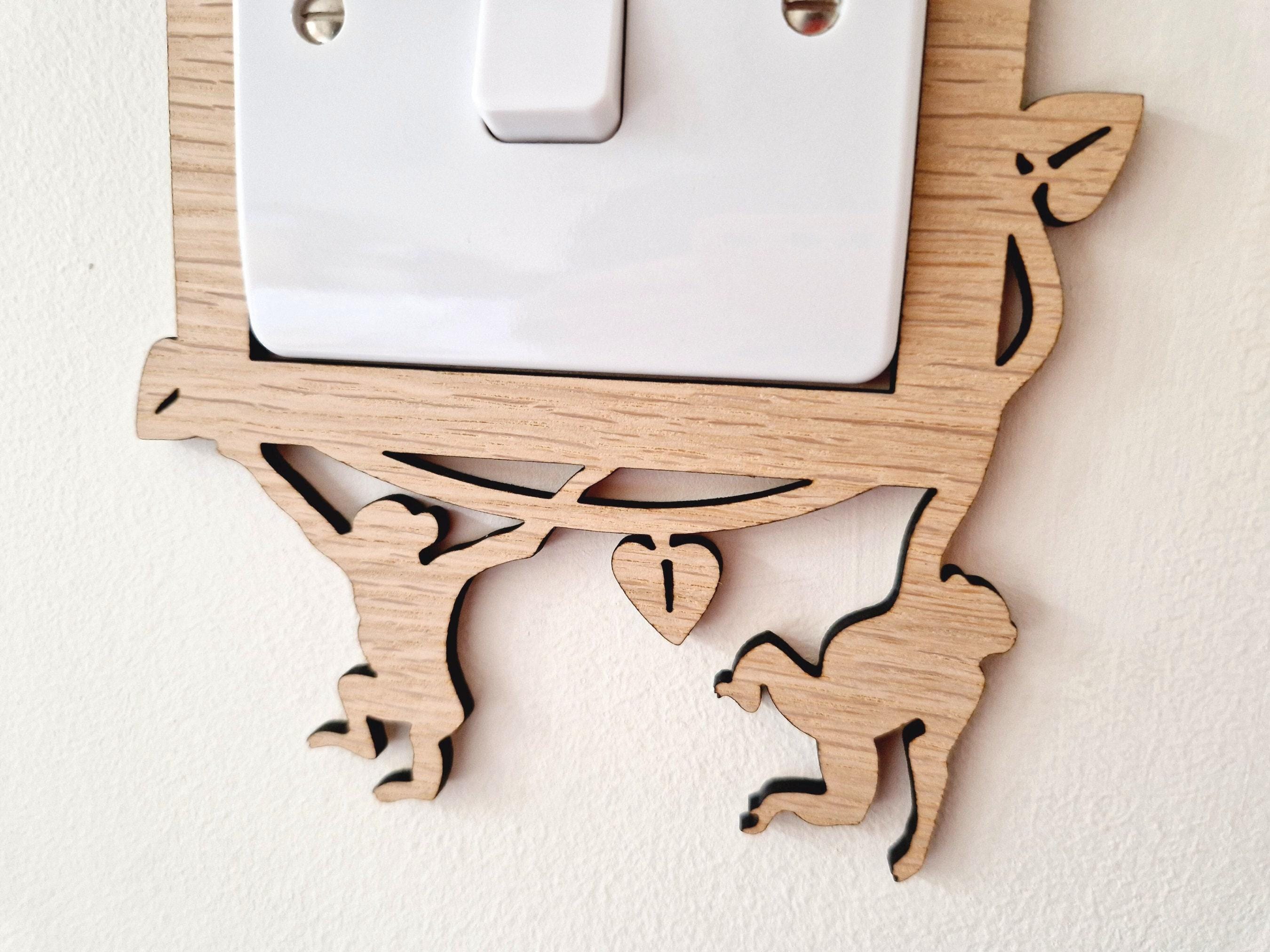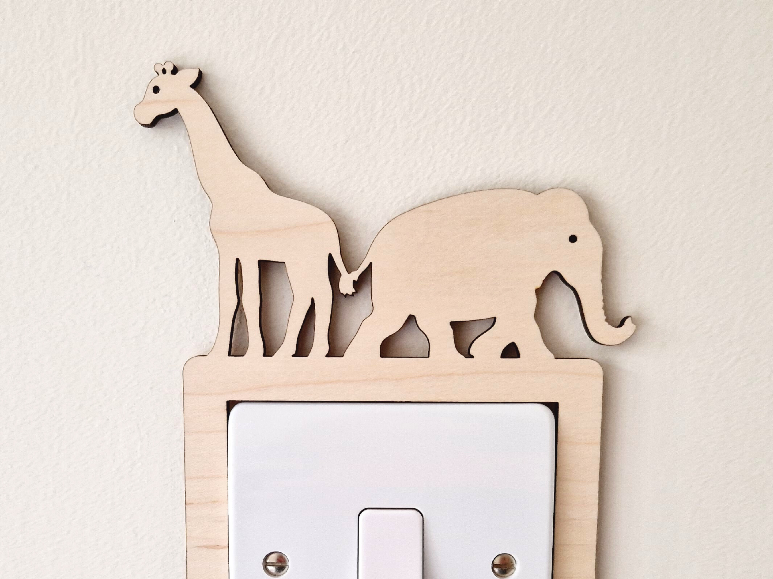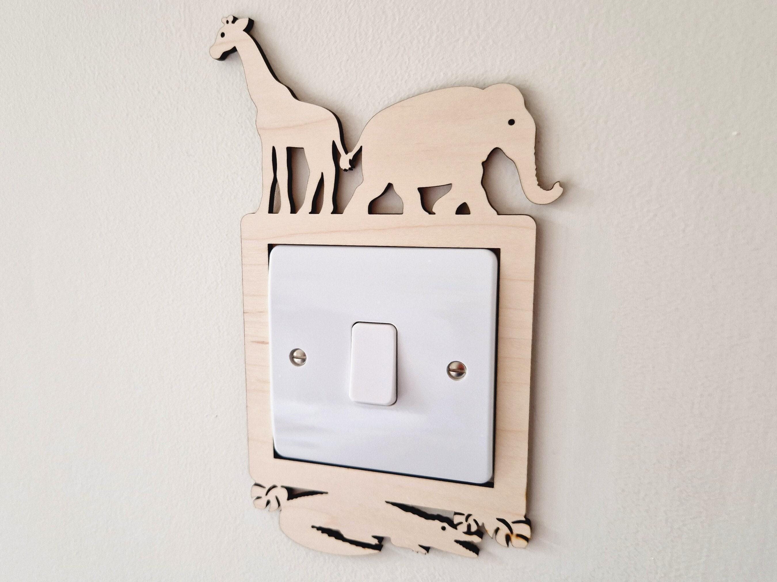 Featuring charming silhouettes of giraffes, lions, elephants, rhinos and monkeys, this jungle-themed design is available in two styles and three wood finishes to suit your décor. It fits standard UK light switches (86mm x 86mm) and adds playful character without fuss.
